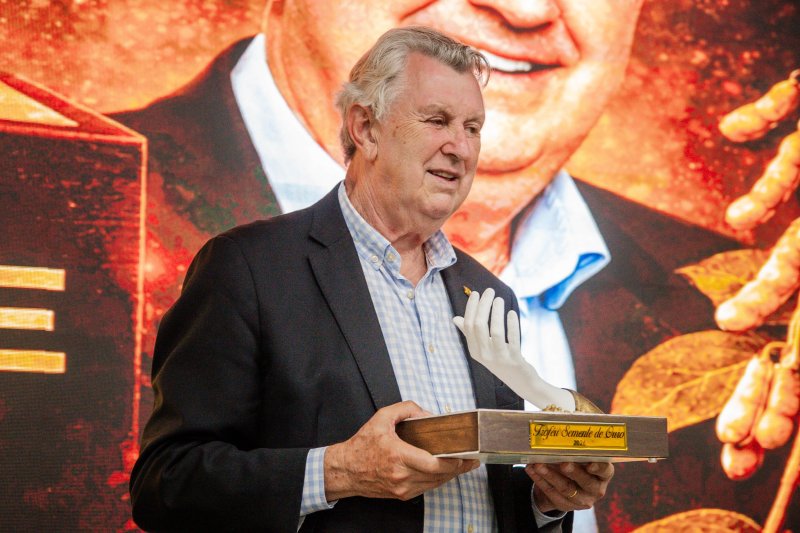 O senador Luis Carlos Heinze foi homenageado com o Troféu Semente de Ouro na 26ª Expodireto Cotrijal, em Não-Me-Toque/RS. Heinze foi reconhecido por sua contribuição como engenheiro agrônomo e político para o desenvolvimento do agronegócio no Brasil.